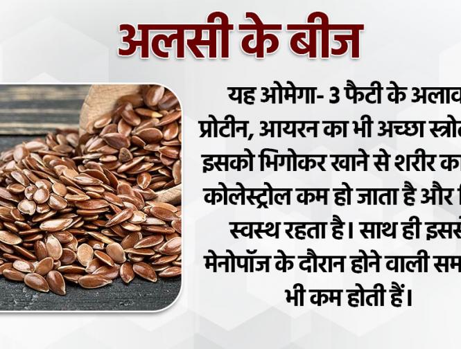 यह ओमेगा- 3 फैटी के अलावा प्रोटीन, आयरन का भी अच्छा स्त्रोत हैं। इसको भिगोकर खाने से शरीर का बैड कोलेस्ट्रोल कम हो जाता है और दिल स्वस्थ रहता है। साथ ही इससे मेनोपॉज के दौरान होने वाली समस्या भी कम होती हैं।