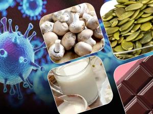 1 / 7हमारे शरीर के लिए हर तरह के पोषक तत्व जरूरी होते हैं, उन्ही महत्वपूर्ण पोषक तत्वों में से जरूरी है जिंक जो अच्छे स्वास्थय के लिए जरूरी होता है, आज हम आपको बताने जा रहे हैं कि कौन सी चीजों में जिंक की मात्रा होती है।2 / 7यदि आप अपने आहार में जिंक शामिल करना चाहते हैं, तो अपने आहार में मशरूम को शामिल करें। मशरूम कैलोरी में कम होते हैं और विटामिन ए, सी, ई और आयरन जैसे आवश्यक पोषक तत्वों से भरे होते हैं। इनमें जर्मेनियम की कुछ मात्रा भी होती है, कुछ सब्जियों में पोषक तत्व कम ही पाए जाते हैं जो हमारे शरीर को प्रभावी ढंग से ऑक्सीजन का उपयोग करने में मदद करते हैं।3 / 7कद्दू के बीज जिंक सहित अलग-अलग प्रकार के पोषक तत्वों से भरे होते हैं। ये बहुमुखी हैं और विभिन्न तरीकों से आपके आहार में जोड़ा जा सकता है। आयरन, मैग्नीशियम और कॉपर के अलावा, हरे बीज भी फाइटोएस्ट्रोजेन से समृद्ध होते हैं, पौधे में पाए जाने वाले यौगिक जो पोस्टमेनोपॉजल महिलाओं में अच्छे कोलेस्ट्रॉल के स्तर में सुधार करते हैं।4 / 7दूध और दही न केवल कैल्शियम के समृद्ध स्रोत हैं, बल्कि इनमें काफी मात्रा में जिंक भी होता है। वे आपकी हड्डियों, दांतों और आंत के स्वास्थ्य के लिए अच्छे हैं। वे बेहद बहुमुखी हैं और उन्हें अपने आहार में शामिल करना आसान है। आप स्मूदी बना सकते हैं या जई के साथ दूध ले सकते हैं।5 / 7यदि आप एक मीठा पसंद करते हैं तो डार्क चॉकलेट जिंक का अच्छा स्रोत है। आप जितनी डार्क चॉकलेट खाते हैं, जिंक की मात्रा उतनी ही अधिक होगी। डार्क चॉकलेट में फ्लेवनॉल भी होता है, जिसके ब्लड प्रेशर मैनेज रहता है, रक्त प्रवाह में सुधार करना और इम्यूनिटी बढ़ता है। 6 / 7 काजू सबसे लोकप्रिय और सस्ती नट्स मे से एक है। इसमें जिंक, कॉपर, विटामिन के, विटामिन ए और फोलेट भरपूर मात्रा में होते हैं। ये नट्स मोनो और पॉलीअनसेचुरेटेड फैटी एसिड का एक बड़ा स्रोत बनाते हैं जो हृदय के अंदर वसा और कोलेस्ट्रॉल के निर्माण को कम करने में मदद कर सकते हैं। इन्हें नियमित रूप से खाने से आपका ब्लड प्रेशर भी नियंत्रित रहता है। 28 ग्राम काजू में 1.6 मिलीग्राम जिंक होता है।7 / 7चिकन में प्रोटिन की काफी अच्छी मात्रा होती है, जो आपकी मांसपेशियों को बढ़ाने और विकास में मदद करता है। लेकिन हम में से बहुत से लोग यह नहीं जानते हैं कि यह जिंक की मात्रा से भी भरपूर होता है। नियमित रूप से चिकन का सेवन आपकी हड्डियों, हृदय स्वास्थ्य के लिए अच्छा है। 85 ग्राम चिकन में 2.4 मिलीग्राम जिंक होता है।