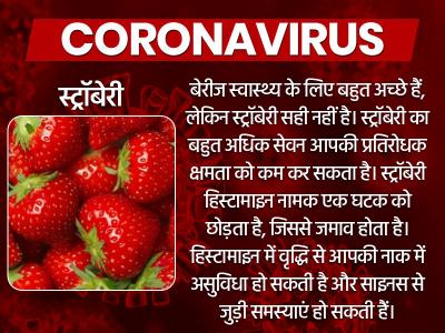 बेरीज स्वास्थ्य के लिए बहुत अच्छे हैं, लेकिन स्ट्रॉबेरी सही नहीं है। स्ट्रॉबेरी का बहुत अधिक सेवन आपकी प्रतिरोधक क्षमता को कम कर सकता है। स्ट्रॉबेरी हिस्टामाइन नामक एक घटक को छोड़ता है, जिससे जमाव होता है। हिस्टामाइन में वृद्धि से आपकी नाक में असुविधा हो सकती है और साइनस से जुड़ी समस्याएं हो सकती हैं।