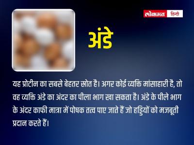 यह प्रोटीन का सबसे बेहतर स्रोत है। अगर कोई व्यक्ति मांसाहारी है, तो वह व्यक्ति अंडे का अंदर का पीला भाग खा सकता है। अंडे के पीले भाग के अंदर काफी मात्रा में पोषक तत्व पाए जाते हैं जो हड्डियों को मजबूती प्रदान करते हैं।