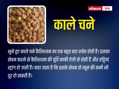 भुने हुए काले चने कैल्शियम का एक बहुत बड़ा स्त्रोत होती है। इसका सेवन करने से कैल्शियम की पूर्ति काफी तेजी से होती हैं और हड्डियां स्ट्रांग हो जाती है। कहा जाता है कि इसके सेवन से खून की कमी भी दूर हो सकती है।
