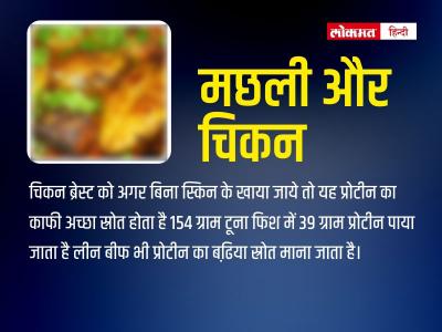 चिकन ब्रेस्ट को अगर बिना स्किन के खाया जाये तो यह प्रोटीन का काफी अच्छा स्रोत होता है 154 ग्राम टूना फिश में 39 ग्राम प्रोटीन पाया जाता है लीन बीफ भी प्रोटीन का बढि़या स्रोत माना जाता है।