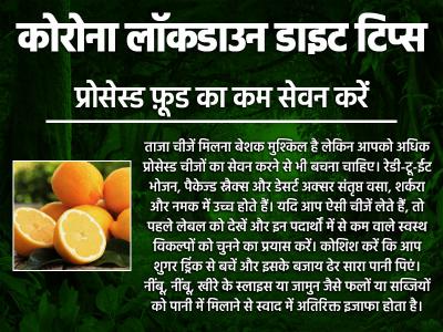ताजा चीजें मिलना बेशक मुश्किल है लेकिन आपको अधिक प्रोसेस्ड चीजों का सेवन करने से भी बचना चाहिए। रेडी-टू-ईट भोजन, पैकेज्ड स्नैक्स और डेसर्ट अक्सर संतृप्त वसा, शर्करा और नमक में उच्च होते हैं। यदि आप ऐसी चीजें लेते हैं, तो पहले लेबल को देखें और इन पदार्थों में से कम वाले स्वस्थ विकल्पों को चुनने का प्रयास करें। कोशिश करें कि आप शुगर ड्रिंक से बचें और इसके बजाय ढेर सारा पानी पिएं। नींबू, नींबू, खीरे के स्लाइस या जामुन जैसे फलों या सब्जियों को पानी में मिलाने से स्वाद में अतिरिक्त इजाफा होता है।