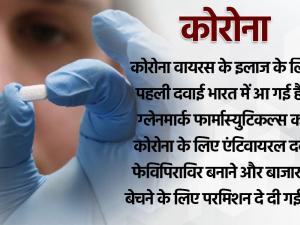 1 / 9कोरोना वायरस के इलाज के लिए पहली दवाई भारत में आ गई है। ग्लेनमार्क फार्मास्युटिकल्स को कोरोना के लिए एंटिवायरल दवा फेविपिराविर बनाने और बाजार में बेचने के लिए परमिशन दे दी गई है।2 / 9कंपनी फैबिफ्लू के नाम से यह दवा बनाती है। एक टैबलेट की कीमत 103 रुपये पड़ेगी।3 / 934 टैबलेट की एक पूरी स्ट्रिप 3500 रुपये में उपलब्ध होगी।4 / 9फैबिफ्लू दवा को माइल्ड से मॉडरेट सिम्प्टम्स वाले मरीज के इलाज के लिए इस दवा का इस्तेमाल किया जाएगा। यह दवाई अस्पतालों के प्रिस्क्रिप्शन पर मेडिकल स्टोर्स में मिलेगा।5 / 9ये दवाई कोशिकाओं में जाने वाले वायरस को रोकती है। ग्लेनमार्क ने 90 माइल्ड लक्षणों और 60 मॉडरेट लक्षणों वाले मरीजों पर दवा का क्लिनिकल ट्रायल किया गया था। 6 / 9यह दवाई मरीजों की कोशिकाओं में जाती और वायरल लोड को कम करने के लिए वायरस को अपनी फैलने से रोकती है। ये दवाई संक्रमण के शुरुआती स्टेज में शरीर में वायरस को फैलने से रोकने में यह दवा असरदार है। 7 / 9रिसर्चस के मुताबिक फैबिफ्लू दवाई का इस्तेमाल शुरुआती स्टेज में किया जाना चाहिए। बाद में स्टेज ज्यादा होने पर वायरस रेप्लिकेशन धीमा पड़ जाता है। बॉडी में हिंसक इम्यून रेस्पांस कई तरह की परेशानी को पैदा कर देता है और शरीर का ऑर्गन फेल्योर हो जाता है। 8 / 9दवाई बनाने वाली कंपनी के मुताबिक, मरीज को पहले दिन 200 एमजी की टैबलेटेस दी जाएगी। अगले दिन से 200MG की 4-4 टैबलेट्स खिलाकर मॉनिटर किया जाएगा। ट्रायल के रिजल्ट्स के रिजल्टस बताते हैं कि 80 प्रतिशत मरीजों पर इस दवाई का असर दिखा।9 / 9ड्रग कंट्रोलक जनरल ऑफ इंडिया (DGCI) ने इस दावा को महामारी के चलते इमजेंसी कैटगरी में मंजूरी दे दी है। ग्लेनमार्क पहली ऐसी कंपनी है जो माइल्ड और मॉडरेट कोरोना के लिए ओरल एंटीवायरल ड्रग लेकर आई है।