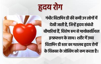 गंभीर विटामिन डी की कमी उन लोगों में देखी जाती है, जिन्हें हृदय संबंधी बीमारियां हैं, विशेष रूप से मायोकार्डियल इन्फ्रक्शन के साथ। शरीर में उच्च विटामिन डी स्तर का मतलब हृदय रोगों के विकास के जोखिम को कम करता है।