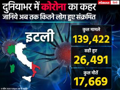 इटली में कोरोना वायरस का ताजा आंकड़ा।