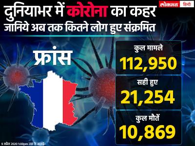 फ्रांस में कोरोना वायरस का ताजा आंकड़ा।