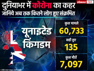 यूनाइटेड किंगडम में कोरोना वायरस का ताजा आंकड़ा।