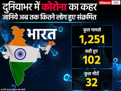 भारत में कुल मामले हैं 1251, सही हुए 102, कुल मौतें 32