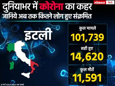 इटली में कुल मामले हैं 101739, सही हुए 14620, कुल मौतें 11591