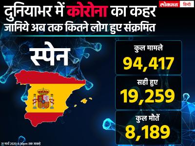 स्पेन में कुल मामले हैं 94417, सही हुए 19259, कुल मौतें 8189