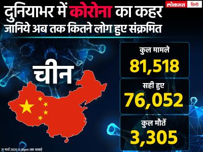 चीन में कुल मामले हैं 81518, सही हुए 76052, कुल मौतें 3305