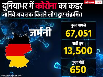 जर्मनी में कुल मामले हैं 67051, सही हुए 13500, कुल मौतें 650