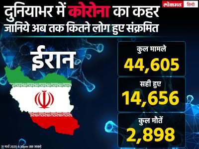 ईरान में कुल मामले हैं 44605, सही हुए 14656, कुल मौतें 2898