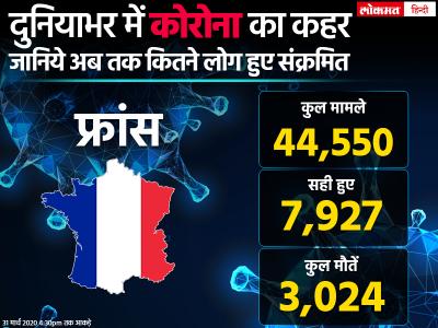 फ्रांस में कुल मामले हैं 44550, सही हुए 7927, कुल मौतें 3024
