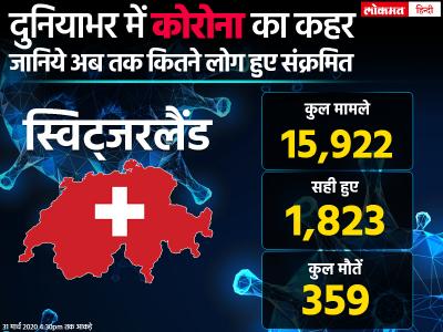 स्विजरलैंड में कुल मामले हैं 15922, सही हुए 1823, कुल मौतें 359