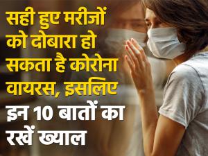 1 / 11कोरोना वायरस के लक्षण और इसके फैलने को लेकर कई अध्ययन हो चुके हैं और अभी तक नई-नई जानकारियां सामने आ रही हैं। हाल ही में एक अध्ययन में यह दावा किया गया था कि किसी व्यक्ति में कोरोना वायरस के लक्षण दोबारा विकसित हो सकते हैं। चिकित्सकों का कहना है कि कोरोना वायरस संक्रमण से ठीक होने के बाद भी रोगी को अपने घर में बिल्कुल अलग थलग अकेले जिंदगी गुजारनी होती है, क्योंकि अभी यह दावा नही किया जा सकता है कि ठीक हो गया व्यक्ति दोबारा इस वायरस के संक्रमण की चपेट में आयेगा या नहीं।2 / 11डॉक्टर ने बताया कि उनकी कोशिश यही रहती है कि ठीक हुए मरीजों को एंबुलेंस से ही घर छोड़ा जाए। जो लोग अपनी गाड़ी में जाना चाहते हैं उनकी गाड़ी को हाइपोक्लोराइट सॉल्यूशन स्प्रे कर सैनिटाइज कराया जाता है।3 / 11घर पहुंचने के बाद अपनी गाड़ी को फिर से साफ कर सैनीटाइज करें4 / 11घर जाकर सबसे पहले नहाएं5 / 11कपड़ों को 0.5 फीसद ब्लीचिंग पाउडर डालकर 70 डिग्री सेल्सियस पर गर्म किए हुए पानी में धोएं6 / 11मोबाइल, लैपटॉप, घड़ी ,चश्मा आदि को भी सैनिटाइज करें 7 / 11घर में उन्हें एक कमरे में 14 दिन तक पृथक वास में रहने की कड़ी हिदायत दी जाती है 8 / 11घर पर रहने के दौरान भी उन्हें अकेले कमरे में रहना पड़ेगा9 / 11हमेशा खाना डिस्पोजल बर्तनों में खाना खाएं 10 / 11हमेशा मास्क पहने रहना होगा11 / 11पहने हुये कपड़ों को अलग रखना होगा, साफ सफाई का विशेष ध्यान रखना होगा