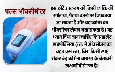 इस छोटे उपकरण को किसी व्यक्ति की उंगलियों, पैर या कानों पर चिपकाया जा सकता है और यह व्यक्ति का ऑक्सीजन लेवल बता सकता है। यह ध्यान दिया जाना चाहिए कि साइलेंट हाइपोक्सिया (रक्त में ऑक्सीजन का बहुत कम स्तर, बिना किसी स्पष्ट संकट के) कोरोना वायरस के चेतावनी लक्षणों में से एक है।