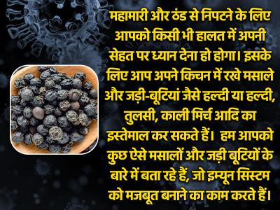 महामारी और ठंड से निपटने के लिए आपको किसी भी हालत में अपनी सेहत पर ध्यान देना हो होगा। इसके लिए आप अपने किचन में रखे मसाले और जड़ी-बूटियां जैसे हल्दी या हल्दी, तुलसी, काली मिर्च आदि का इस्तेमाल कर सकते हैं। हम आपको कुछ ऐसे मसालों और जड़ी बूटियों के बारे में बता रहे हैं, जो इम्यून सिस्टम को मजबूत बनाने का काम करते हैं