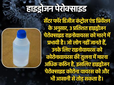 सेंटर फॉर डिजीज कंट्रोल एंड प्रिवेंशन के अनुसार, 3 प्रतिशत हाइड्रोजन पेरोक्साइड राइनोवायरस को मारने में प्रभावी है। जो लोग नहीं जानते हैं, उनके लिए राइनोवायरस को कोरोनावायरस की तुलना में मारना अधिक कठिन है, इसलिए हाइड्रोजन पेरोक्साइड कोरोना वायरस को और भी आसानी से तोड़ सकता है।