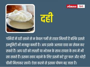 1 / 6गर्मियों में दही खाने से न केवल गर्मी से राहत मिलती है बल्कि इससे इम्यूनिटी भी मजबूत बनती है। आप इसके अलावा छाछ का सेवन कर सकते हैं। आप दही को लस्सी या भोजन के साथ रायता के रूप में भी खा सकते हैं। इसका स्वाद बढ़ाने के लिए इसमें कटे हुए फल और थोड़ी चीनी मिलाकर खायें। ऐसा करने से इसका पोषण बढ़ जाता है। 2 / 6नारियल अनगिनत स्वास्थ्य लाभ से भरा है और इसमें शरीर को ठंडा रखने के गुण हैं। यह सिंपल शुगर, इलेक्ट्रोलाइट्स और मिनरल्स से भरा हुआ है जो शरीर को अच्छी तरह से हाइड्रेटेड और पोषित रखने में मदद करते हैं।3 / 6ये ऐसे फल हैं जिनमें भारी मात्रा में पानी भरा हुआ होता है। यह फल पेट को भारी किये बिना आपकी भूख को शांत करते हैं। बस आपको गर्मियों में ऐसे फलों को खाने से बचना चाहिए जो पहले से कटे हुए हैं। इनमें वो सभी पोषक तत्व पाए जाते हैं जो इस कोरोना संकट में शरीर की मजबूती के लिए चाहिए। 4 / 6खीरा फाइबर और पानी से भरा होता है और इसलिए यह आपको हाइड्रेटेड रखने और कब्ज जैसे समस्या से बचाने में सहायक है। इसे अपने सलाद में भरपूर मात्रा में मिलाएं या दिन में जब भी आपको कुछ खाने का मन करे तो खीरा। हल्के नमक, काली मिर्च और चूने के साथ छिड़का हुआ, यह गर्मियों में कभी भी नाश्ते के लिए एक अच्छा विकल्प है।5 / 6पुदीना एक आसानी से उपलब्ध और एक सस्ती जड़ी बूटी है जिसका उपयोग आप चटनी, रायता, डिप्स और ताज़ा ठंडा पेय बनाने में कर सकते हैं। इसके ताज़ा और ठंडे स्वाद के कारण, यह कई गर्मियों के मसालों में एक प्रधान है। इसके नियमित सेवन से इम्यून पावर मजबूत होती है।6 / 6प्याज में अविश्वसनीय शीतलन गुण होते हैं। आप सब्जी के अलावा प्याज को रायता, सलाद और चटनी के रूप में खा सकते हैं। प्याज से बनी यह सभी चीजें शरीर को ठंडा रखने में मदद करती हैं। प्याज सनस्ट्रोक से सुरक्षा प्रदान कर सकता है।