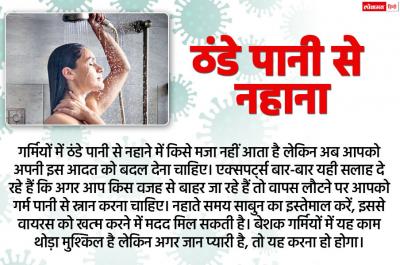 गर्मियों में ठंडे पानी से नहाने में किसे मजा नहीं आता है लेकिन अब आपको अपनी इस आदत को बदल देना चाहिए। एक्सपर्ट्स बार-बार यही सलाह दे रहे हैं कि अगर आप किस वजह से बाहर जा रहे हैं तो वापस लौटने पर आपको गर्म पानी से स्नान करना चाहिए। नहाते समय साबुन का इस्तेमाल करें, इससे वायरस को खत्म करने में मदद मिल सकती है। बेशक गर्मियों में यह काम थोड़ा मुश्किल है लेकिन अगर जान प्यारी है, तो यह करना हो होगा।