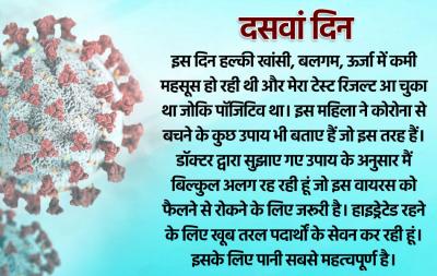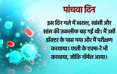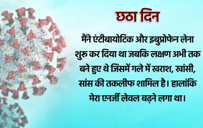 इस दिन हल्की खांसी, बलगम, ऊर्जा में कमी महसूस हो रही थी और मेरा टेस्ट रिजल्ट आ चुका था जोकि पॉजिटिव था।
