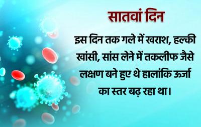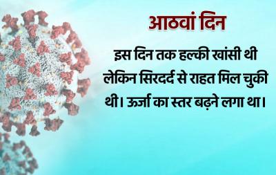 इस दिन तक गले में खराश, हल्की खांसी, सांस लेने में तकलीफ जैसे लक्षण बने हुए थे हालांकि ऊर्जा का स्तर बढ़ रहा था।