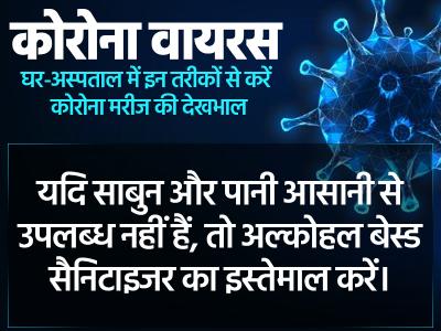 यदि साबुन और पानी आसानी से उपलब्ध नहीं हैं, तो अल्कोहल बेस्ड सैनिटाइजर का इस्तेमाल करें।