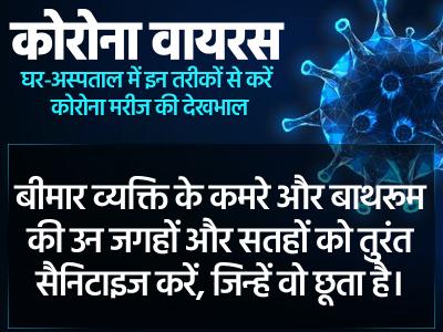 बीमार व्यक्ति के कमरे और बाथरूम की उन जगहों और सतहों को तुरंत सैनिटाइज करें, जिन्हें वो छूता है।