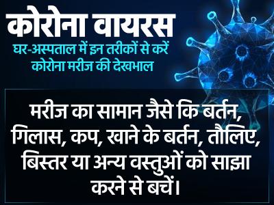 मरीज का सामान जैसे कि बर्तन, गिलास, कप, खाने के बर्तन, तौलिए, बिस्तर या अन्य वस्तुओं को साझा करने से बचें।