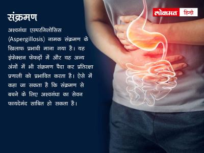 अश्वगंधा एस्परगिलोसिस नामक संक्रमण के खिलाफ प्रभावी माना गया है। ऐसे में संक्रमण से बचने के लिए अश्वगंधा का सेवन फायदेमंद साबित हो सकता है।