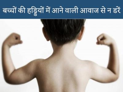 अगर किसी बच्चे या किशोरावस्था में हड्डियों से कट-कट की आवाज आ रही है और उसकी हड्डियों में कोई दर्द या परेशानी का अनुभव नहीं हो रहा है तो परेशानी की कोई बात नहीं है। इसका मतलब यह नहीं कि बच्च्चे की हड्डियां कमजोर हैं या उसके शरीर में कैल्शियम की कमी है। हड्डियों से कट-कट की आवाज आने का मतलब है कि उसकी हड्डियों में वायु अधिक है। इस वजह से हड्डियों के जोड़ों में एयर बबल्स बनते हैं। और टूटते हैं। जिसकी वजह से हड्डियों से कट-कट की आवाज आती है।