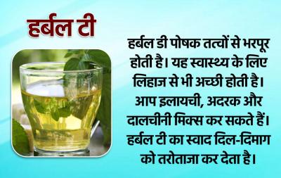हर्बल डी पोषक तत्वों से भरपूर होती है। यह स्वास्थ्य के लिए लिहाज से भी अच्छी होती है। आप इलायची, अदरक और दालचीनी मिक्स कर सकते हैं। हर्बल टी का स्वाद दिल-दिमाग को तरोताजा कर देता है।