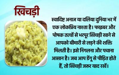स्वादिष्ट अनाज या दलिया दुनिया भर में एक लोकप्रिय नाश्ता है। फाइबर और पोषक तत्वों से भरपूर खिचड़ी खाने से आपको बीमारी से लड़ने की शक्ति मिलती है। इसे निगलना और पचाना आसान है। जब आप डेंगू से पीड़ित होते हैं, तो खिचड़ी जरूर याद रखें।