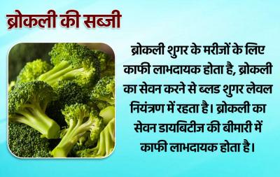 ब्रोकली शुगर के मरीजों के लिए काफी लाभदायक होता है, ब्रोकली का सेवन करने से ब्लड शुगर लेवल नियंत्रण में रहता है। ब्रोकली का सेवन डायबिटीज की बीमारी में काफी लाभदायक होता है।