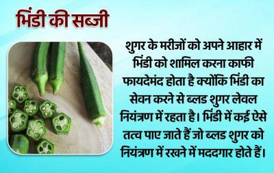 शुगर के मरीजों को अपने आहार में भिंडी को शामिल करना काफी फायदेमंद होता है क्योंकि भिंडी का सेवन करने से ब्लड शुगर लेवल नियंत्रण में रहता है। भिंडी में कई ऐसे तत्व पाए जाते हैं जो ब्लड शुगर को नियंत्रण में रखने में मददगार होते हैं।