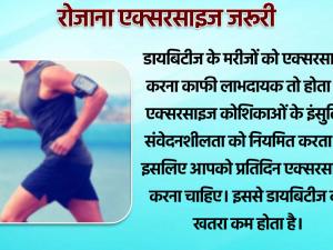 1 / 6डायबिटीज के मरीजों को एक्सरसाइज करना काफी लाभदायक तो होता है। एक्सरसाइज कोशिकाओं के इंसुलिन संवेदनशीलता को नियमित करता है। इसलिए आपको प्रतिदिन एक्सरसाइज करना चाहिए। इससे डायबिटीज का खतरा कम होता है।2 / 6ऐसी स्थिति में आपको डिब्बाबंद जूस पीने से बचना चाहिए। क्योंकि उसमे शुगर की मात्रा अधिक होती है। इसके बजाय आपको सादा पाने या नींबू पानी पीना चाहिए। वैसे छाछ भी काफी फायदेमंद हो सकता है।3 / 6डायबिटीज के मरीज को जरूरी है कि वे अपने आहार में फाइबर को शामिल जरूर करें। इससे पाचन का प्रोसेस सही रहता है जो ब्लड लेवल को मेंटेन करता है। फाइबर स्वस्थ ब्लड शुगर लेवल को बनाए रखने में मददगार होता है। यह आपके दिल के स्वास्थ्य के लिए भी लाभदायक होता है और वजन बढ़ने से भी रोकता है।4 / 6दरअसल मोटापा डायबिटीज के खतरे को और अधिक कर देता है। रिसर्च में पाया गया है कि जिन लोगों का वजन स्वस्थ होता है उनमें डायबिटीज का खतरा काफी कम होता है, जबकि जो लोग मोटे होते हैं उनमें डायबिटीज का खतरा अधिक होता है।5 / 6ब्रोकली शुगर के मरीजों के लिए काफी लाभदायक होता है, ब्रोकली का सेवन करने से ब्लड शुगर लेवल नियंत्रण में रहता है। ब्रोकली का सेवन डायबिटीज की बीमारी में काफी लाभदायक होता है।6 / 6अलसी के बीज का सेवन करना सेहत के लिए काफी लाभदायक होता है। अलसी के बीज में कई ऐसे गुण पाए जाते हैं जो ब्लड शुगर को नियंत्रण में रखने में मददगार होते हैं। ब्लड शुगर लेवल को नियंत्रण में रखने के लिए डायबिटीज के मरीजों को प्रतिदिन अलसी का सेवन किसी न किसी रूप में करना फायदेमंद होता है।