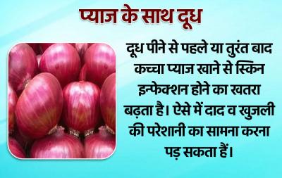 दूध पीने से पहले या तुरंत बाद कच्चा प्याज खाने से स्किन इन्फेक्शन होने का खतरा बढ़ता है। ऐसे में दाद व खुजली की परेशानी का सामना करना पड़ सकता हैं।