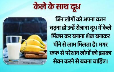 जिन लोगों को अपना वजन बढ़ना हो उन्हें रोजाना दूध में केले मिक्स कर बनाना शेक बनाकर पीने से लाभ मिलता है। मगर कफ से परेशान लोगों को इसका सेवन करने से बचना चाहिए।