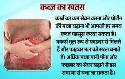 कार्ब का कम सेवन करना और प्रोटीन की मात्रा बढ़ाना भी आपको हर समय कब्ज महसूस करवा सकता है। कार्ब्स मूल रूप से फाइबर से मिलते हैं और फाइबर मल को सरल बनाते हैं। अधिक मात्रा पानी पीना और फाइबर का सेवन बढ़ाने से इस समस्या से बचा जा सकता है।