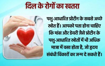 पशु-आधारित प्रोटीन के सबसे अच्छे स्रोत हैं। आपको पता होना चाहिए कि मांस और डेयरी जैसे प्रोटीन के पशु-आधारित स्रोतों में भी अधिक मात्रा में वसा होता है, जो हृदय संबंधी विकारों का जन्म दे सकते हैं।