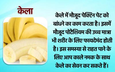 केले में मौजूद पेक्टिन पेट को बांधने का काम करता है। इसमें मौजूद पोटैशियम की उच्च मात्रा भी शरीर के लिए फायदेमंद होती है। इस समस्या से राहत पाने के लिए आप काले नमक के साथ केले का सेवन कर सकते हैं।