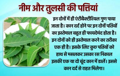 इन दोनों में ही एंटीबैक्टीरियल गुण पाया जाता है। कान दर्द होने पर इन दोनों पतियों का इस्तेमाल बहुत ही फायदेमंद होता है। इन दोनों को ही इस्तेमाल करने का तरीका एक ही है। इसके लिए कुछ पतियों को हाथ से मसलकर उसका रस निकाल इसकी एक या दो बूंद कान में डालें। इससे कान दर्द से राहत मिलेगा।