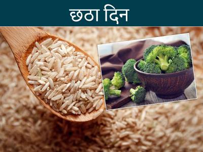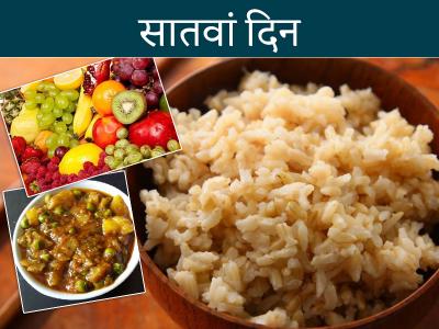 डाइट के आखिरी दिन आप एक कप ब्राउन राइस, कोई भी सब्जी और सभी फलों का सेवन कर सकते हैं। इसके अलावा आप खाने के बाद एक गिलास फ्रूट जूस ले सकते हैं।