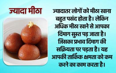 ज्यादातर लोगों को मीठा खाना बहुत पसंद होता है। लेकिन अधिक मीठा खाने से आपका दिमाग सुस्त पड़ जाता है। जिसका प्रभाव दिमाग की सक्रियता पर पड़ता है। यह आपकी तार्किक क्षमता को कम करने का काम करता है।