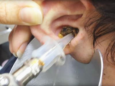 ध्यान रखें कि अगर कान के पर्दे सुरक्षित हैं, तो ऑब्जेक्ट को थोड़ा गर्म पानी से धोने की कोशिश करें।