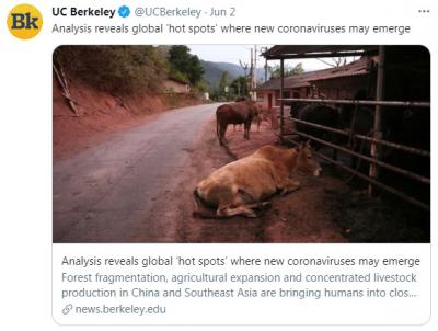 दुनिया भर में भूमि उपयोग का तरीका बदल रहा है। जंगल काटे जा रहे हैं। कृषि का विस्तार हो रहा है। यह सब काम बाघों और उनके कोरोना वायरस के लिए अनुकूल परिस्थितियों का निर्माण कर रहा है। इन स्थितियों का अध्ययन कर वैज्ञानिकों ने उन हाईस्पॉट्स की सूची तैयार की है जहां नए कोरोना वायरस बनने की संभावना है। इसने यह भी कहा कि इन जगहों से चमगादड़ों के जरिए कोरोना वायरस इंसानों को संक्रमित कर सकता है।