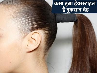 अक्सर हम कोई भी हेयरस्टाइल बनाते समय भूल जाते हैं कि वो हमारे ही बाल हैं। रबड़ बैड से या क्लिप से बालों को इस कदर कसते हैं कि ये आपके बालों को नुकसान देता है। रात को सोने से पहले भी अगर चोटी बनाकर सो रही हैं तो ढीली चोटी बनाएं। बहुत ज्यादा कसा हुआ बाल आपके सिर को नुकसान पहुंचा सकता है।