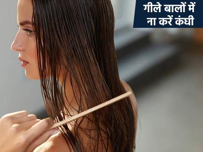 अक्सर ये गलती लड़कियां करती हैं। बाल गीले होने के तुरंत बाद उसमें कंघी कर लेती हैं। इससे भी बाल काफी झड़ता है। गीले बाल संवेदनशील होते हैं। ये बहुत जल्दी टूट जाते हैं। बहुत जरूरी हो तो हल्के गीले बालों को चौड़े दांतोंवाली कंघी से सुलझा सकते हैं लेकिन बहुत भारी हाथ से बालों को ना छेड़े। जब बाल पूरी तरह सूख जाए तभी उसे झांड़ें।